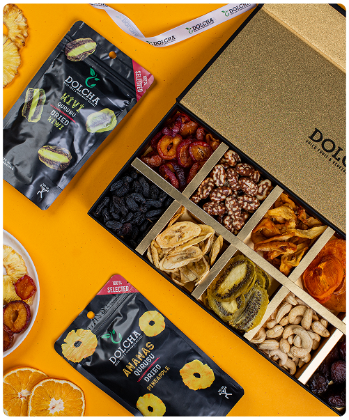 Dolcha 2006-cı ildən etibarən təbiətin saf dadını qoruyan, yüksək keyfiyyətli və 100% təbii qurudulmuş meyvələrin istehsalçısıdır. Biz şəkər əlavəsiz, qatqısız və orqanik qurudulma texnologiyası ilə sağlam qəlyanaltılar təqdim edirik.
